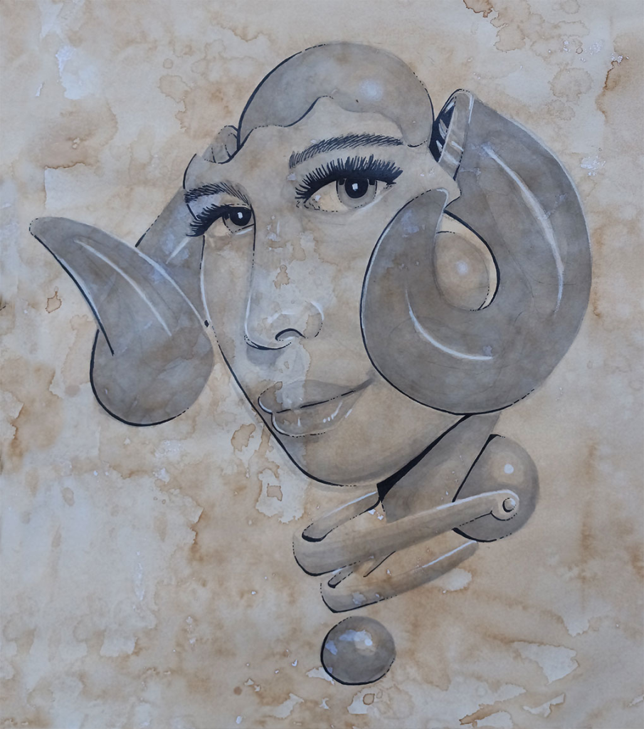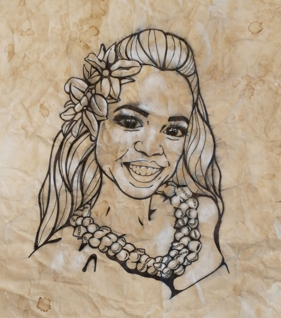 Modziw’s art is defined by precision, realism, and a touch of whimsy. Using delicate ink wash techniques, he creates photorealistic portraits and mystical island scenes. Because he often sketches while traveling Wiiowii Island in search of rare medicinal plants, his papers carry natural stains—adding authenticity and history to each piece.