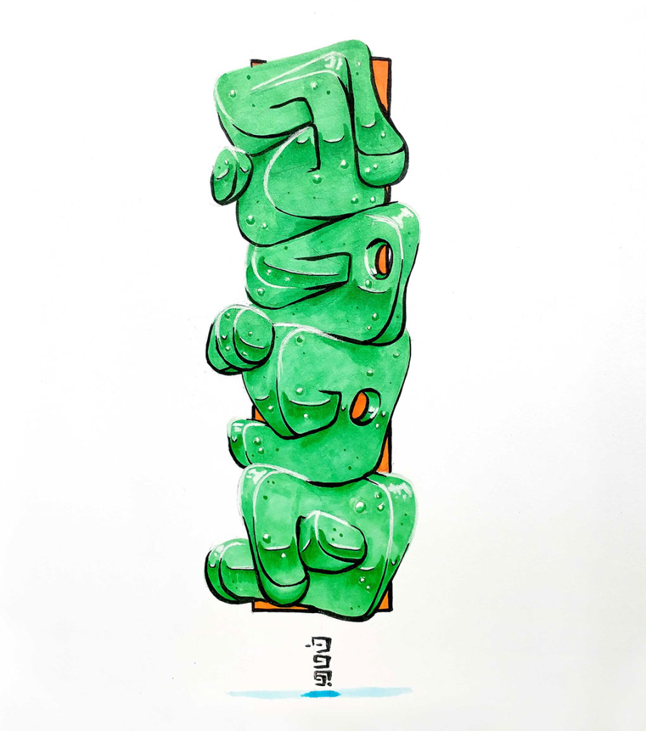 Nai’s artwork draws inspiration from the mystical Scolimo language, where every letter can be stretched, skewed, and reshaped yet remain legible, much like graffiti infused with ancient magic. Her pieces celebrate rhythm, voice, and transformation, reflecting her role as both singer and storyteller of Wiiowii.