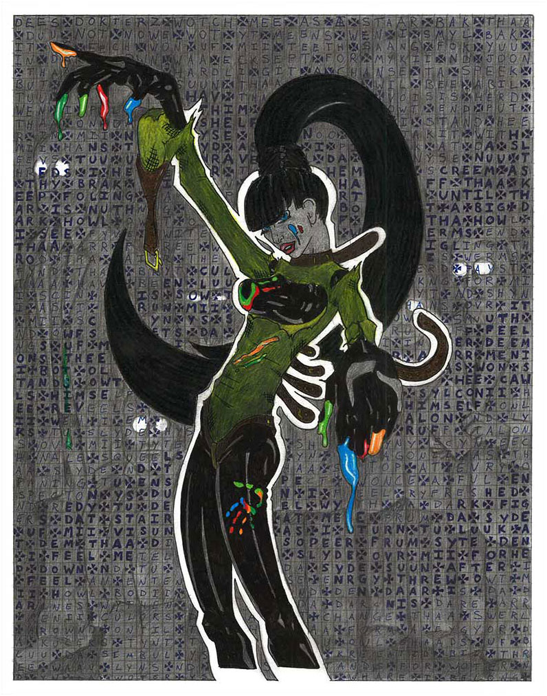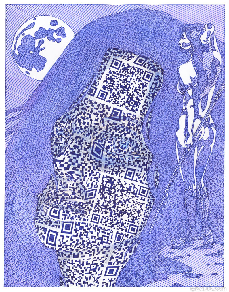 The art of Zaug, commander of the Zaug Army, breaks away from the traditions of Wiiowii. His eclectic style blends mixed media, cryptic codes, and surreal imagery that blurs the line between reality and imagination. Some pieces reflect the strange world around him, while others emerge from the depths of his darker visions, making every work unpredictable, haunting, and uniquely his.